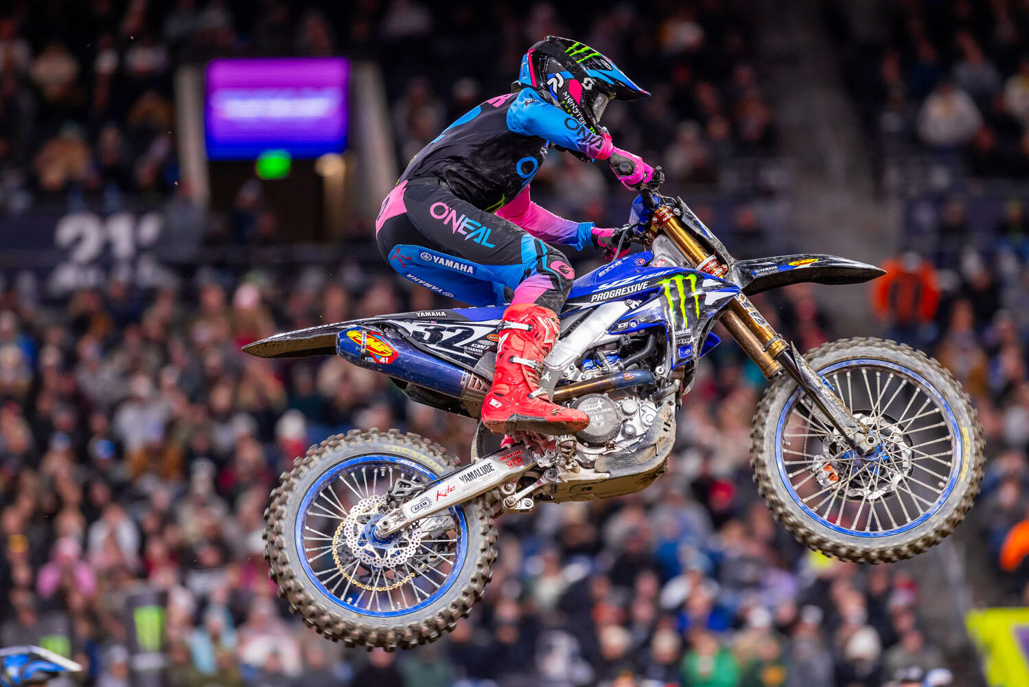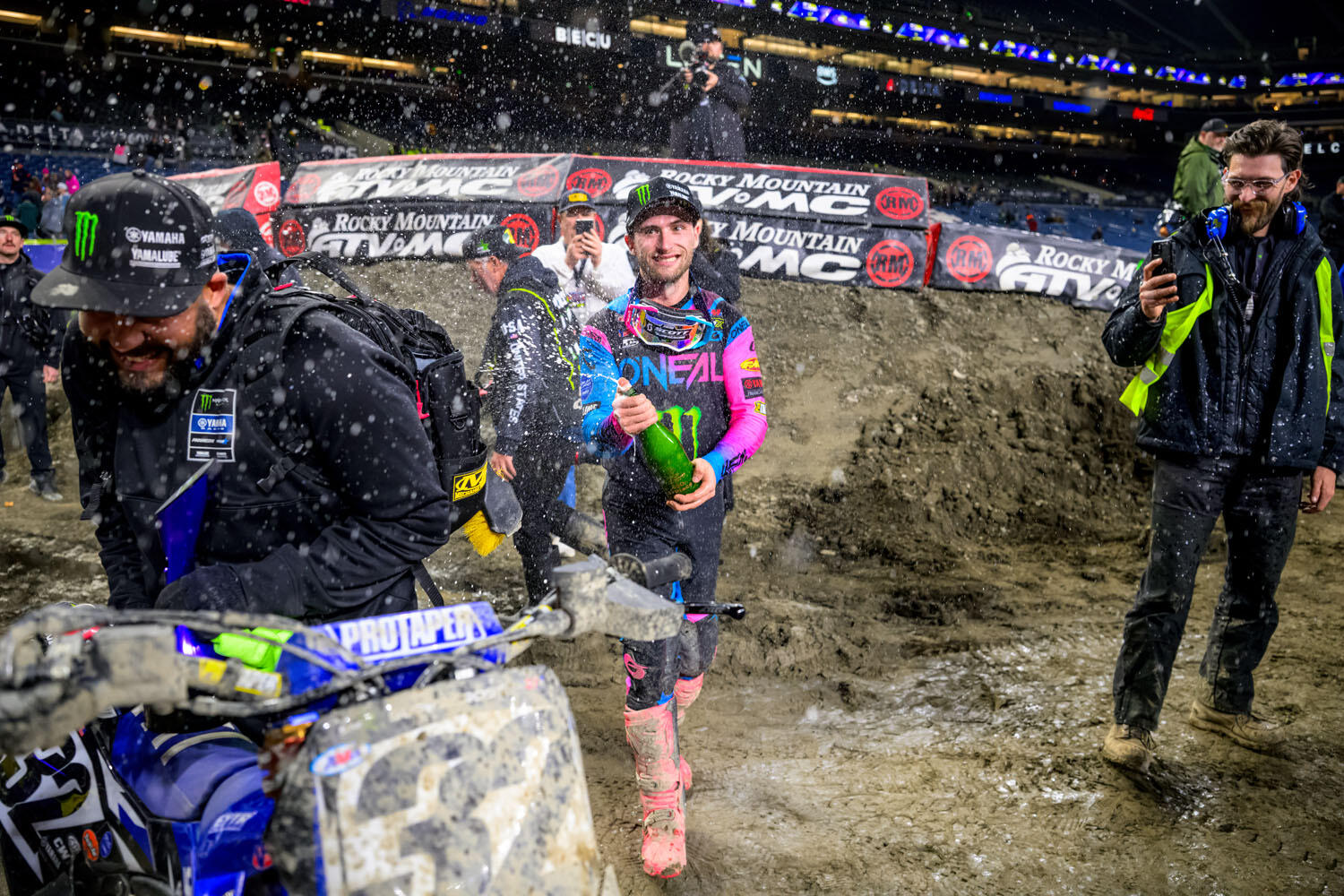 「まさにシアトルで、コースは本当に荒れていました。450ccクラスの全車が20分プラス1周で争うので、本当に厳しいレースになります。かなりの集中力が必要ですが、僕は堅実にラップしました。あのふたりからプレゼントをもらった格好ですが、最後まで走り続けなければいけないんです。全体的に良い夜でした。予選は最高というわけではなかったのですが、ヒートレースは今年のベストレースのひとつに数えられるものでした。3番手スタートから2番手まで上がりました。メインイベントに向けて良いゲートを得ることができて、スタートでは6、7番手につけました。何度か追い抜きをして、レースの大半で4、5番手を走行していました。その後、他のライダーたちがミスした際に彼らに追いつき、表彰台圏内まで上がり、目標を果たすことができました。このようにシーズン序盤で表彰台に立つことができてうれしいです。先週末は4位、今週末は3位。正しい方向に進んでいると思いますし、今後のレースが楽しみです」