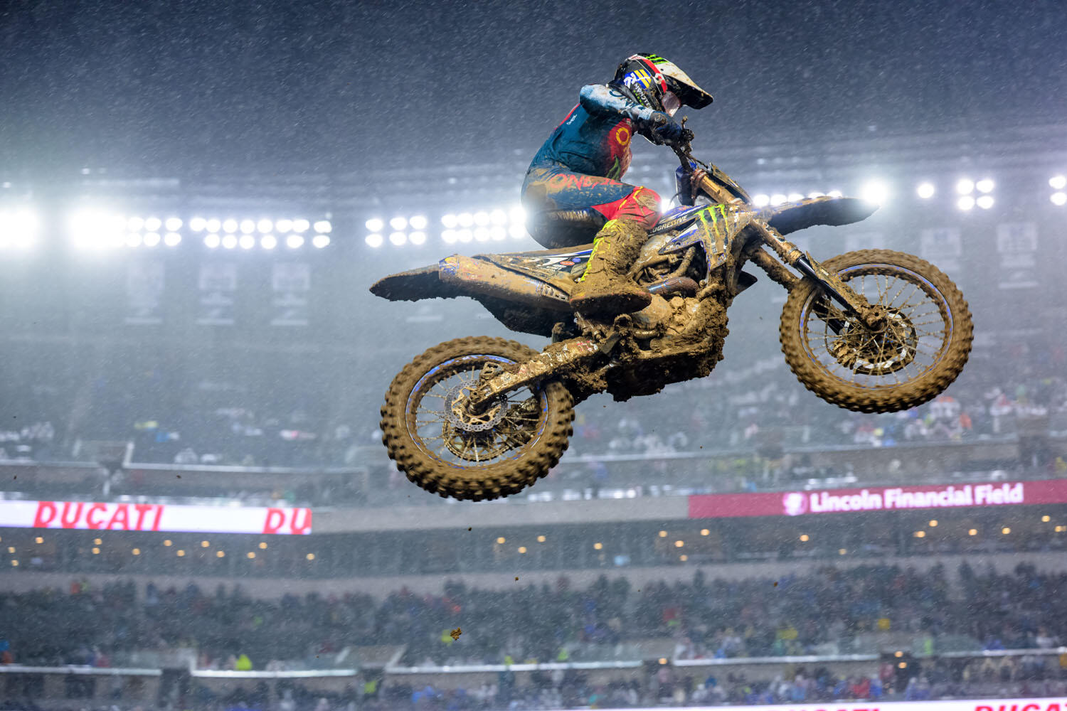 終盤を迎えている2026年AMAスーパークロス450SXでウエブが熱戦を続けている。土曜日の夜、リンカーン・フィナンシャル・フィールドで行われた第15戦は雨が降り、レースがマディの過酷なコンディションとなったが、ウエブは力強いライディングを披露。全力を出し切って優勝を逃したものの3戦連続となる2位を獲得した。