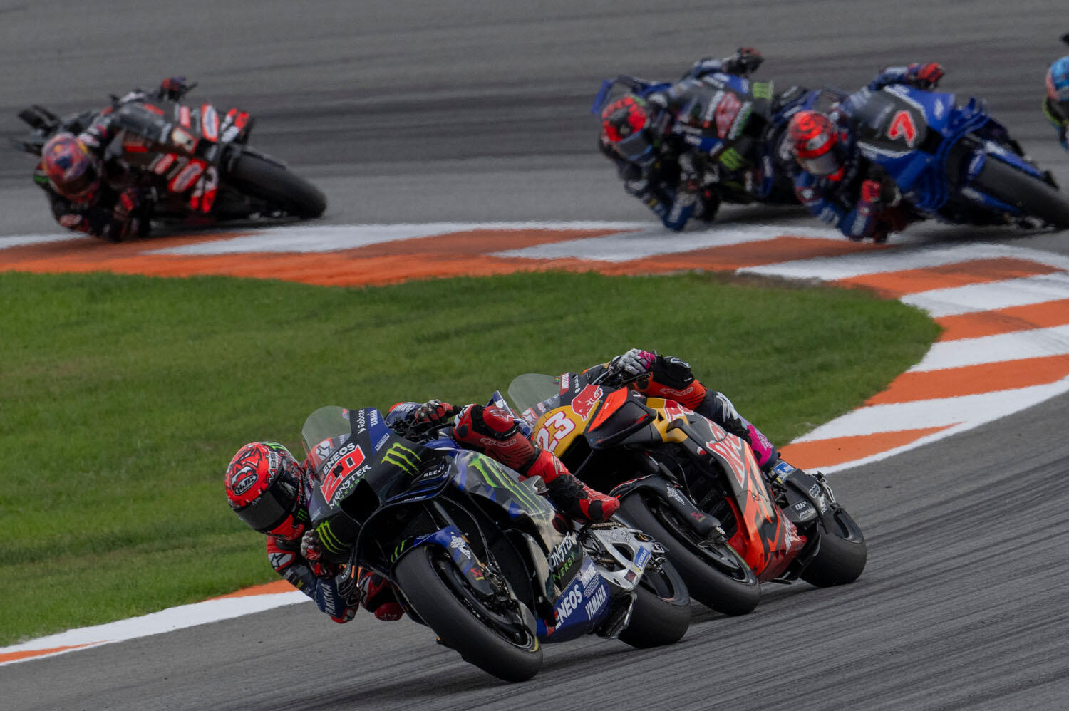 クアルタラロ選手はスタートでやや出遅れ、オープニングラップを11位で終了。E・バスティアニーニ選手(KTM)の後方につけてチャンスを窺っていたが、オーバーテイクには至らなかった。そして24ラップ目、第8コーナー進入で転倒。幸い怪我はなかったが、シーズン最終戦をリタイアで終えることとなった。