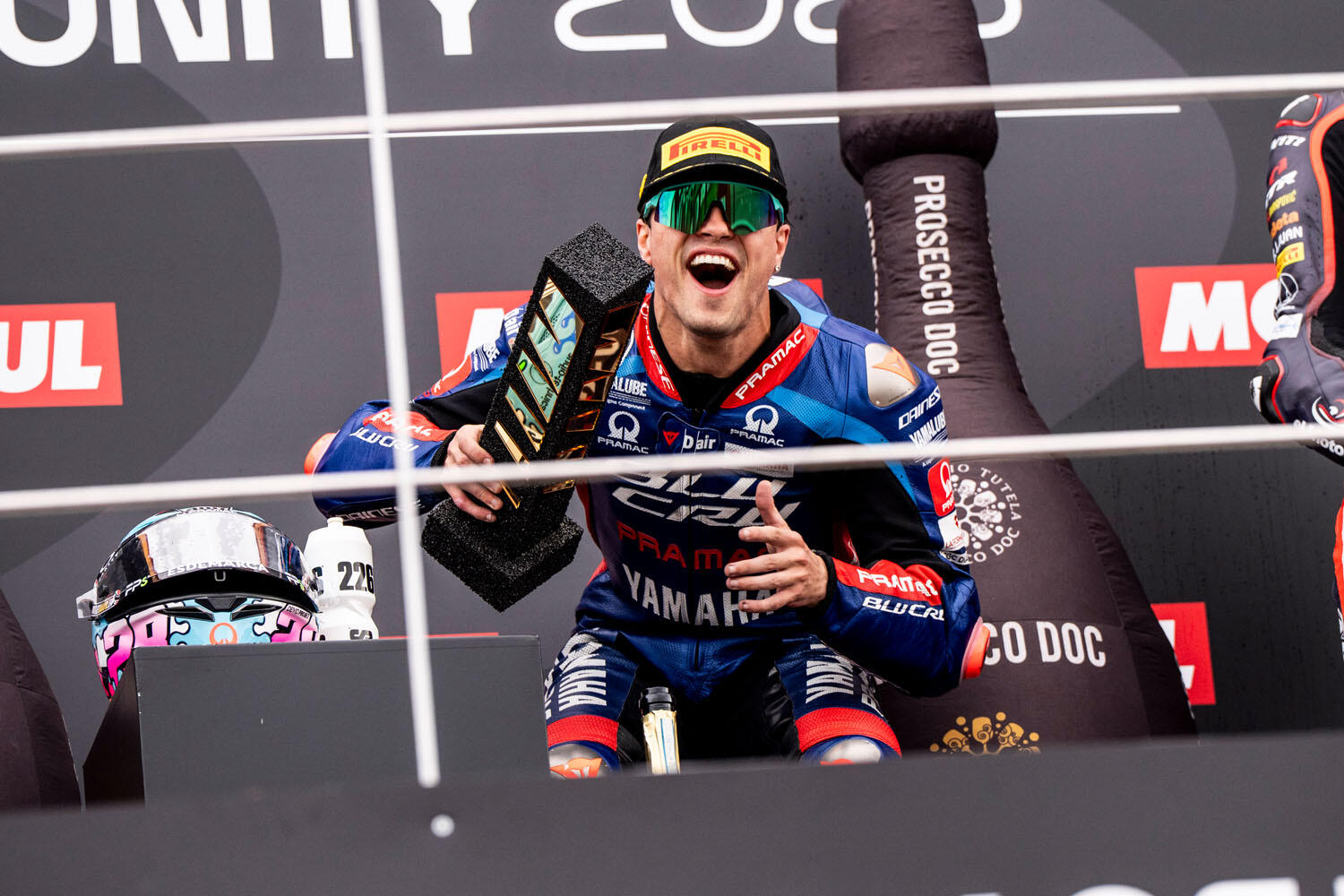 「自分自身にとって、そしてチームにとって、この勝利は非常に大きな意味があります。私を信頼してくれたヤマハとPramac Racingに感謝しています。この結果は何よりも彼らのおかげです。このチームは1年前に生まれたばかりで、22戦を経て今日、最初の勝利を勝ち取りました。とても素晴らしい気持ちです。ここまで懸命にハードワークを続けてきて、今や優勝できるだけの強いチームへと成長したのです。とくにジーノ・ボルゾイには本当に感謝しています。彼は私を信じ、私のキャリアにおいてずっと重要な役割を担ってくれました。また私がBLU CRUプロジェクトの一員になることを許してくれたヤマハや、いつも支えてくれる家族にも感謝しています。今大会では金曜日に2回も転倒し、うち1回はかなり激しいものでした。私が病院で検査を受けている間も、メカニックたちは時間との戦いのなかで私のためにマシンを準備してくれました。Q2はとても順調でしたし、決勝では大いに楽しんで走ることができました。最後の数ラップはホルガド選手がアタックしてくるのがわかっていたので守りの走りをしなければなりませんでした。でも勝利を決意していて、実際に成し遂げたのです。私たちはこの1年でとても多くのことを学びました。今日の勝利は来シーズンに向けてのスターティング・ポイントになるはずです」