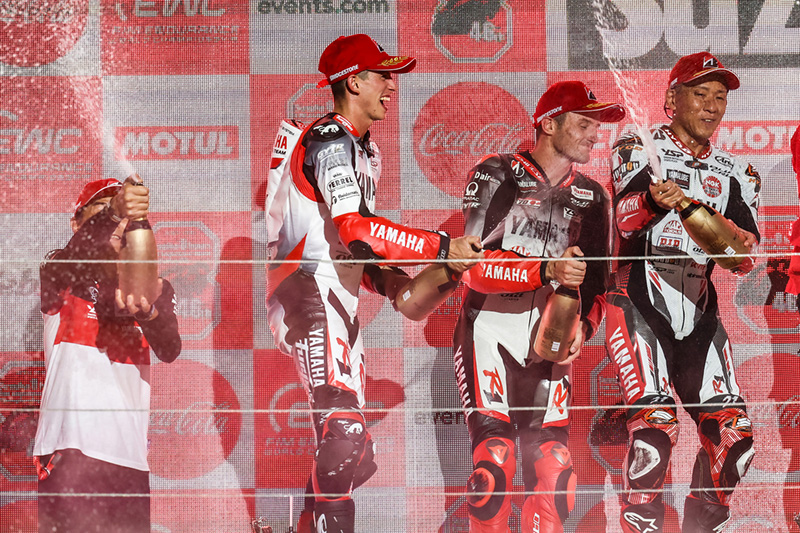 こうして迎えた本番では「YAMAHA FACTORY RACING TEAM」が2年連続でポールポジションを獲得。第1走者の中須賀がトップで最初のスティントを終えると、エスパルガロ、ローズ、そしてピットワークを含め、完璧なルーティンを見せて218周を走破し、2015年に続き2年連続の優勝を獲得。これにより通算優勝回数を6に伸ばし、1987-1988年以来28年ぶりの連覇を達成した。また「YART Yamaha Official EWC Team」のパークス、野左根、藤田は、214周を走り、表彰台にあと一歩に迫る4位入賞を果たした。